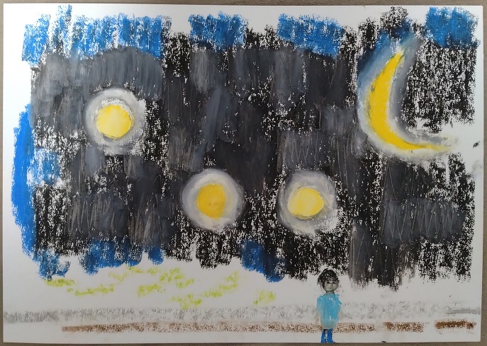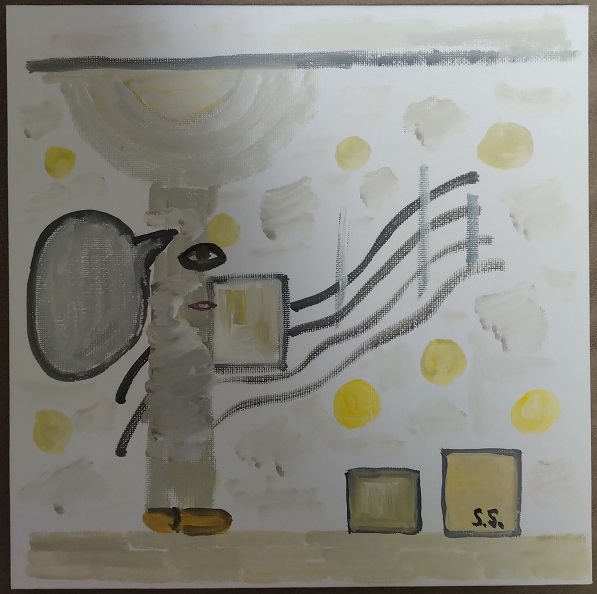 初期は、パソコンで絵画を描き、途中から紙やキャンバスに描くようにしました。