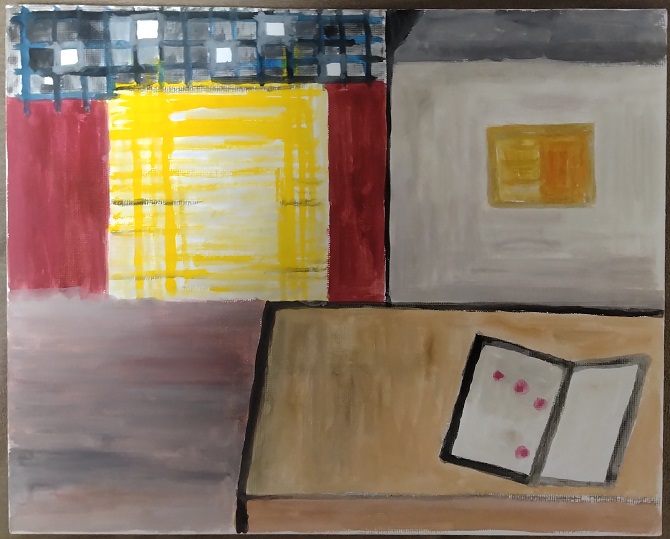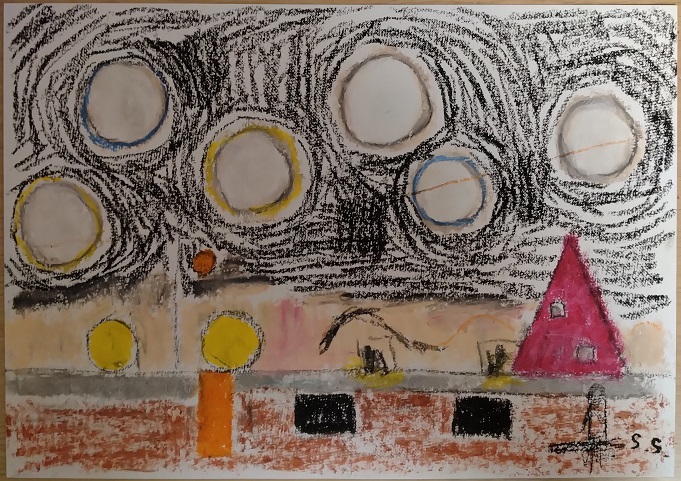 初期は、パソコンで絵画を描き、途中から紙やキャンバスに描くようにしました。